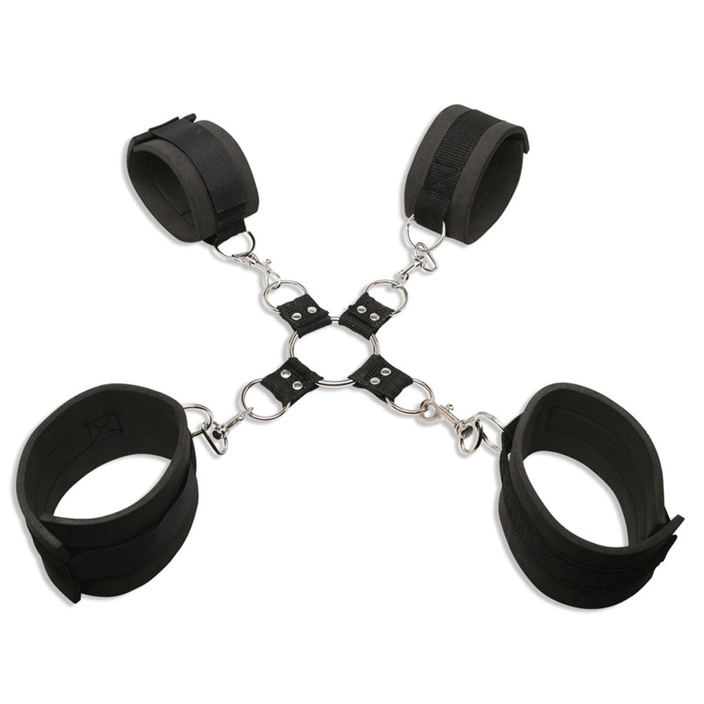 Take total control over your lovers every move with this Extreme Hogtie Kit. This easy-to-use hogtie kit includes neoprene wrist and ankle cuffs, a heavy-duty metal hogtie, and free satin love mask. Enjoy the the thrill of being hogtied without having to worry about complicated techniques and tying elaborate knots. The cuffs attach to the hogtie with spring-loaded metal clips and easily adjust with velcro to fit most sizes. Once your lover is on their stomach bound and tied, what happens next is up to you!