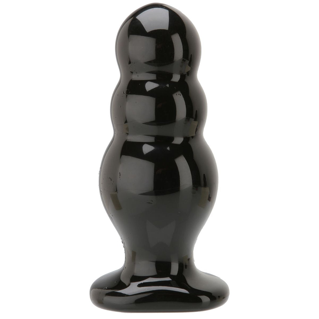 The Master Tool #4 Triple Ripple is a large butt plug from the Doc Johnson collection. The black butt plug has a small top and a ribbed shaft with three large ribs. The butt plug has a firm core with a soft and smooth outer layer for maximum comfort during insertion. The wide, flat base makes sure the plug is not inserted too deep. The wide base also makes the plug suitable to wear in combination with a strap-on harness.