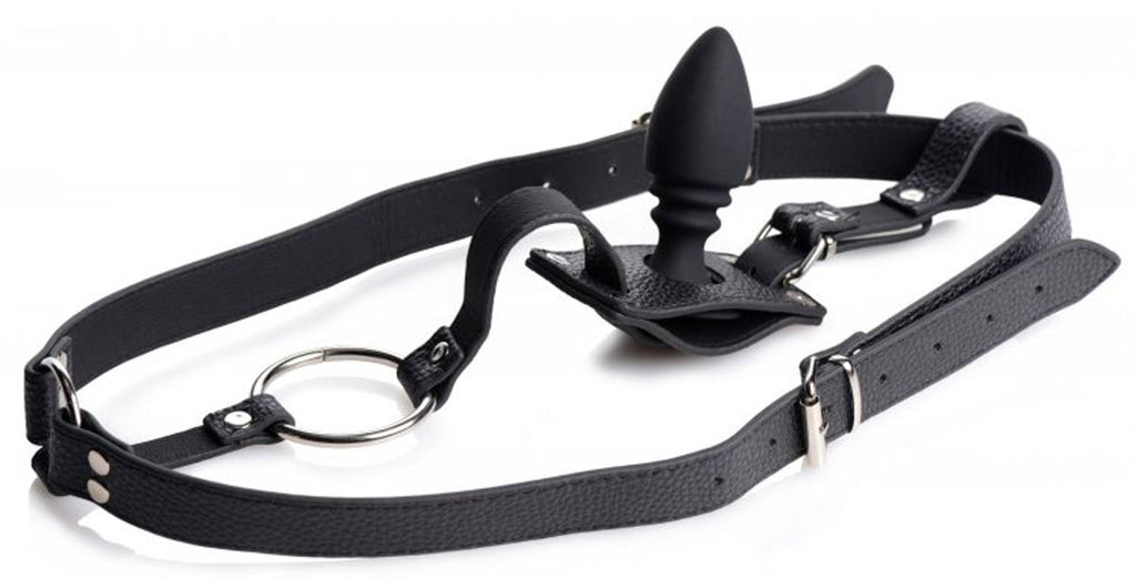 This harness combines a metal cock ring with a ribbed silicone butt plug. Pull the penis and balls through the ring to create a hard and sensitive erection. Insert the plug and enjoy a great anal stimulation. The straps are adjustable for a good fit. The plug can also be removed to play with on its own, with a convenient suction cup base. Clean the plug with warm water and toy cleaner.