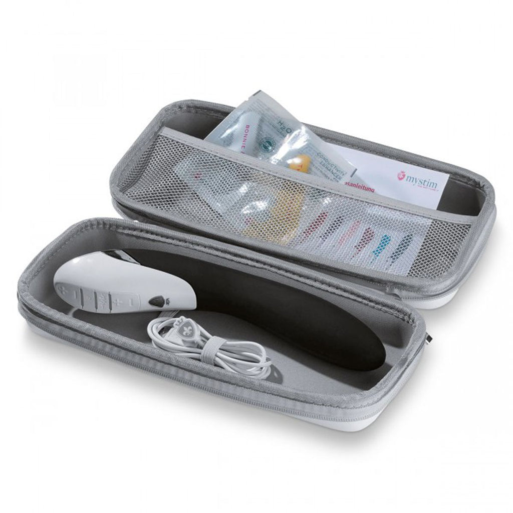 The E-Stim Vibes are the first and only toys that have you enjoy both vibration and electrical stimulation at once ? and they don?t even need a nerve stimulator kit for it. No cables, no devices ? Electric Eric & co vibrate, tingle and pulsate all on their own. Vibration Our Eric hast not one but two vibration motors: one in the tip and one in the shaft. In 8 different programmes and 5 different intensity levels, these two work together to provoke some ecstasy in a nicely varied array of ways. E-Stim Each of the E-Stim Vibe?s 5 electrical stimulation programmes is set on bringing you a tingly new sensation, and you can choose between 10 different levels of intensity. Eric?s conductive surfaces run the length of his body to make the stimulation as smooth and broad as possible. Pelvic Floor training And because 8 vibration modes and 5 e-stim varieties weren?t enough yet, our Electric Eric also has a training programme that strengthens the muscles in your pelvic floor ? which verifiably enhances the ladies? ability to reach an orgasm. The three different functions are easily controlled via the buttons in the handle. You can choose whether you want e-stim and vibration together or only one of them. Our Electric Eric is made of medical-grade platinum silicone. This makes him not only very hygienic, but also easy to clean with a damp cloth and a mild soap. He comes with a built-in long-life lithium-ion battery that is rechargeable via a Mystim magnet charge USB cable which is, of course, included in the delivery. Even if you have both e-stim and vibrations set to their highest levels, a fully charged Eric runs for at least 3 hours before his efficacy starts to fade. Warning Do not use in case of heart complaints/pacemaker or with cardiac arrhythmias Do not use if you are pregnant Do not place on eyelids Do not place on damaged skin Avoid abrupt changes in shock in/adjustment Keep out of reach of children Do not turn on the control unit until you have attached the accessories to the body, not before.