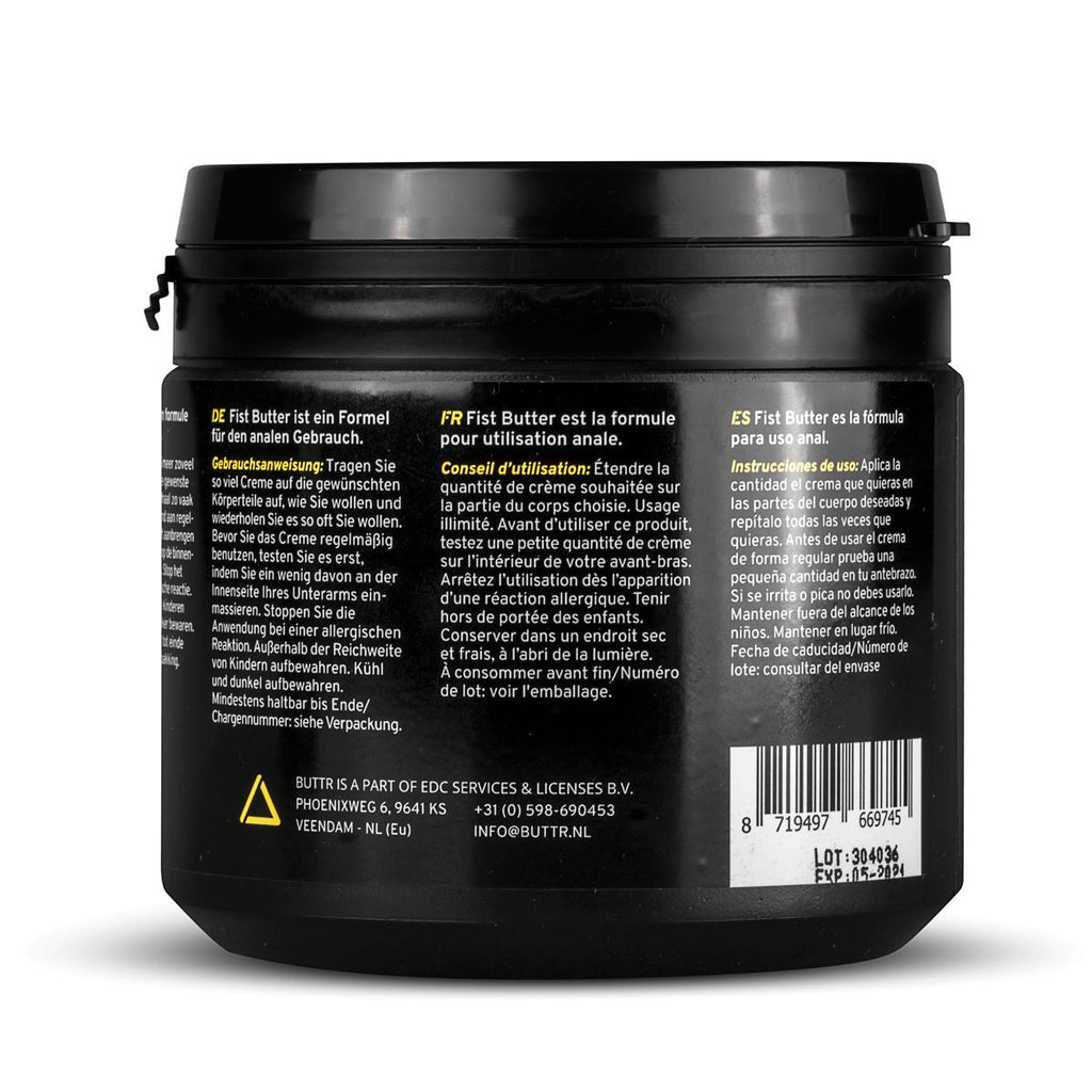 BUTTR Fisting Butter is indispensable for fans of fisting. Fisting butter is an extremely smooth, thick anal lubricant that eases penetration. It is gentle on the skin, remains smooth for a long time and is free from perfumes. The large pot facilitates further application of extra lubricant, so you only have to focus on pleasure.