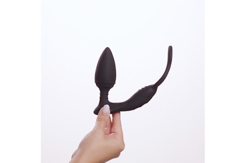 The super-stretchy cock and ball ring will keep you harder for longer whilst the vibrating plug and base will stimulate the anus and perineum as you thrust.