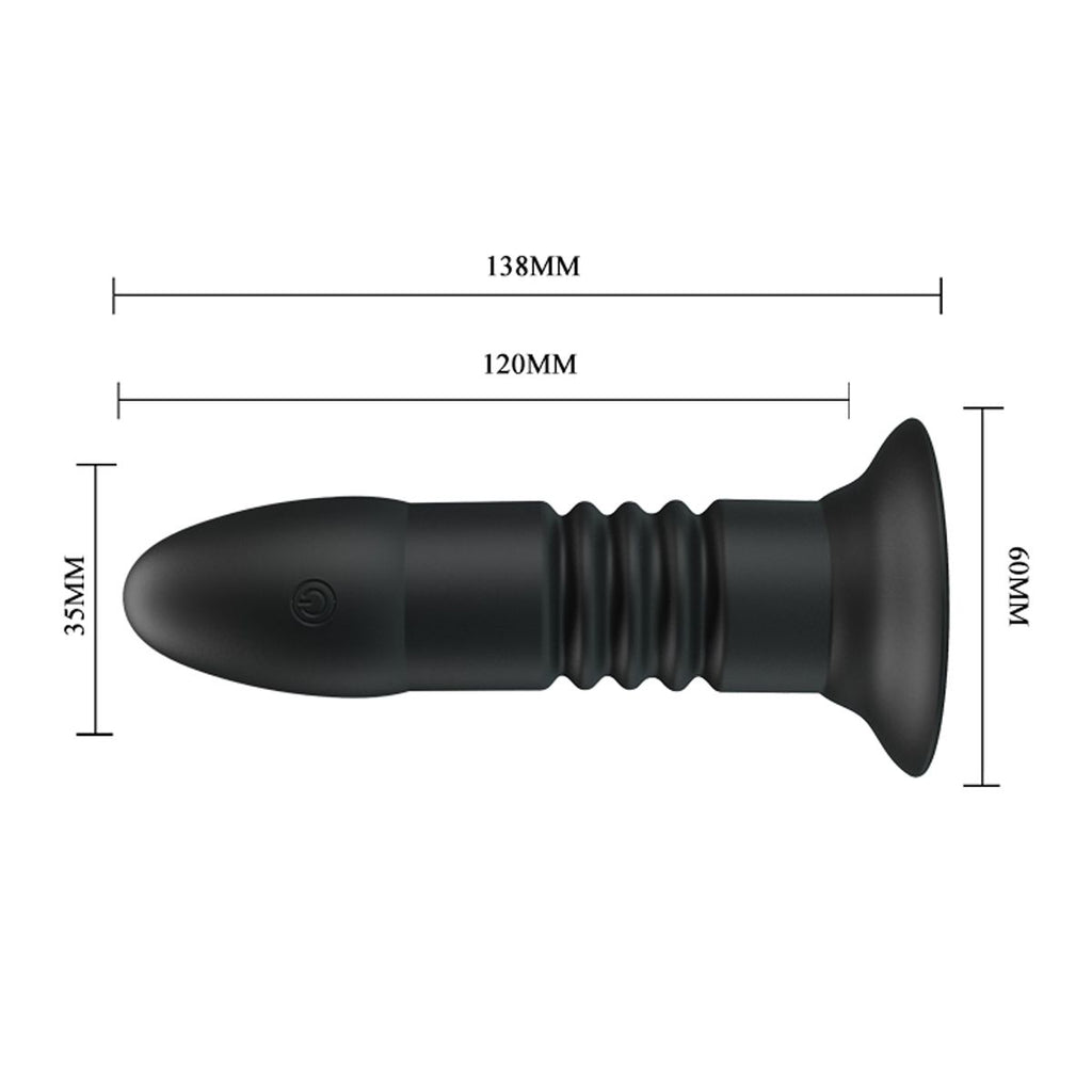 This vibrating buttplug is provided with 4 powerful vibration settings and a thrusting function with 4 speeds for extra stimulation. The thrusting function and vibrations are easy to control with the remote control. It is made of soft silicone for comfortable use and is completely waterproof. Clean the plug after use with water and toy cleaner.