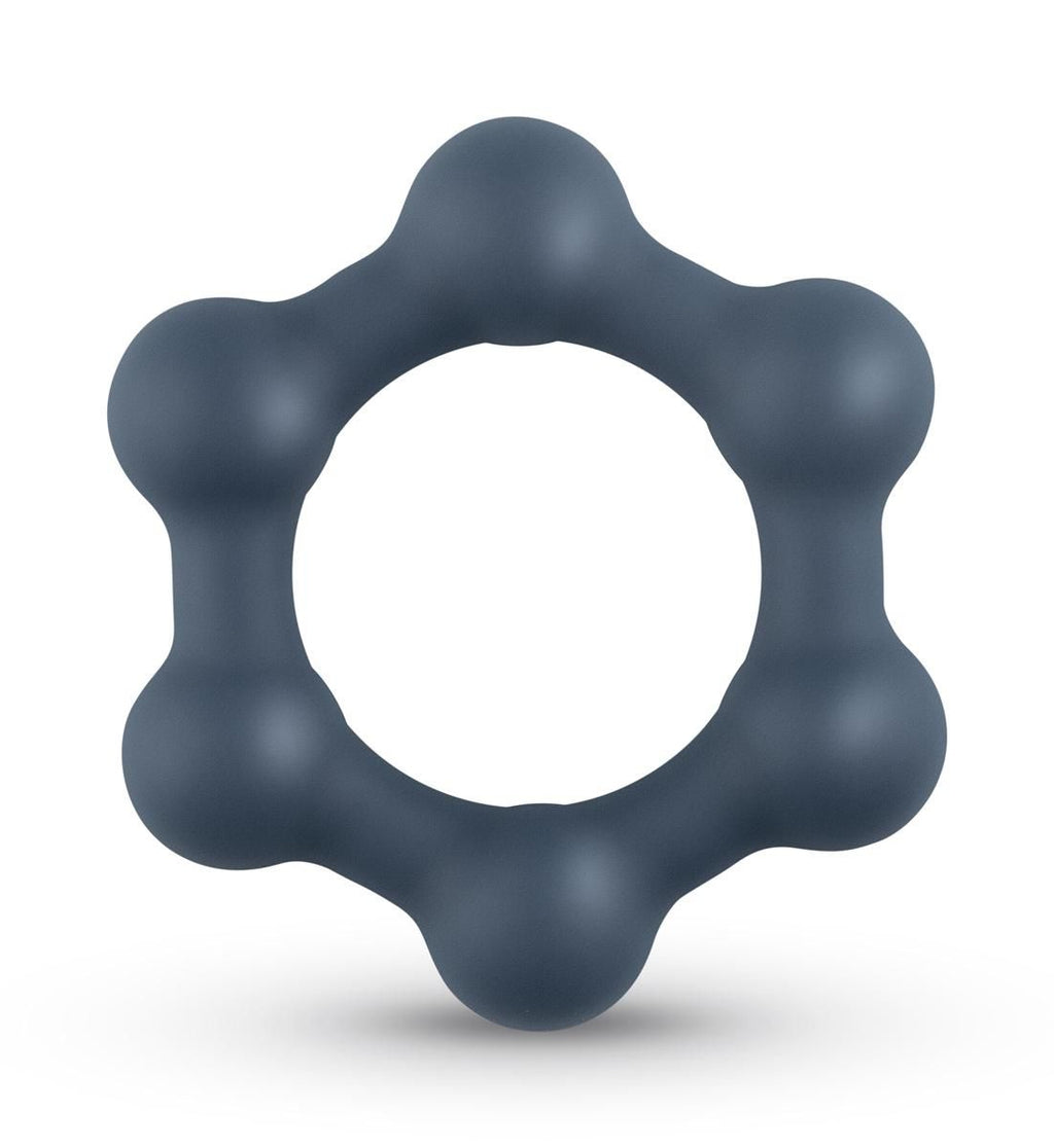 Enjoy harder and longer lasting erections, intense orgasms, and extra stimulation with the Hexagon cock ring from the Boners collection. The ring is made of soft silicone and features steel balls on the inside. The cock ring is stretchy and bendable for a good and comfortable fit, while the steels balls offer even more stimulation. Place the ring around the base of the penis when the penis is flaccid. During an erection, the ring restricts blood flow, which provides a harder and longer lasting erection, as well as intense orgasms. Clean the ring after use with toy cleaner and lukewarm water.