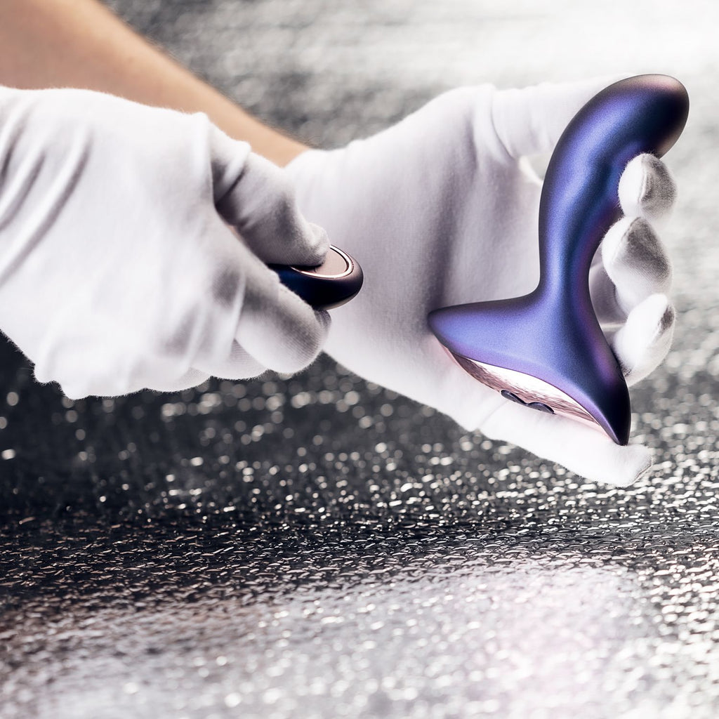 This stylish anal vibrator from the Hueman collection is a must-have for lovers of anal stimulation. The vibrator is made of soft silicone and features 10 different vibration settings (4 speeds and 6 patterns), which are easy to set with the wireless remote control. The top of the shaft is bent to stimulate the prostate. Thoroughly clean the vibrator after use with toy cleaner and lukewarm water.