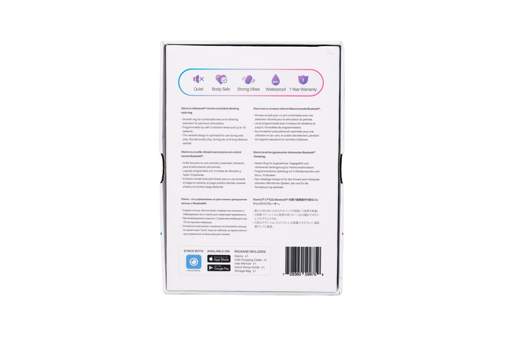 The Diamo Vibrating App Controlled Cock Ring is Lovense's first external sex toy for men that is app controllable. Diamo is a hands-free, discreet and comfortable cock ring that helps you achieve a harder, longer lasting erection. The Diamo is well suited to enjoy together but also for solo use. Diamo Vibrating App Controlled Cock Ring has a powerful motor, but is whisper quiet with a noise level of only 46 dB. The power of the motor allows you to enjoy intense vibrations aimed at the perineum or clitoris. You place Diamo easily and comfortably over the penis and balls by using a little bit of water-based lubricant. Diamo's body features one button to control vibrations. Via the Lovense App (iOs, Android) you can easily control Diamo from your phone. The Lovense App includes following options: - Control Diamo up close via the Bluetooth function - Design your own vibrations and save 10 custom vibration patterns - Long distance control, give your partner control (or vice versa) - Download, create and share unlimited vibration patterns - Let Diamo react with vibrations to the rhythm of your favorite music Diamo can be recharged quickly with the supplied USB cable and it's waterproof. For extra comfort, we recommend using a water-based lubricant. After use, clean the product with a toy cleaner.