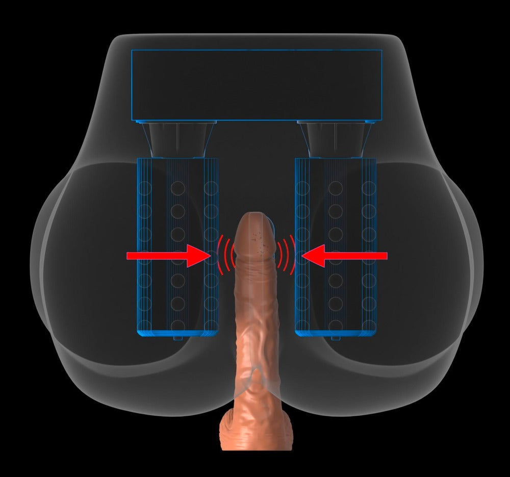 Realistic doggy style pleasure with a vibration and milking function! Masturbator Milk Me Silly from PDX-Elite that is an extremely realistic replica of a torso with large bum cheeks, a vagina hole and an anus hole. The life-like Real Material looks like real skin and feels just as velvety soft too. There is a powerful motor that rotates in each bum cheek and they provide an intense milking massage – the 5 modes and 5 speeds provide plenty of variety. The exciting vibrations in 5 modes and 5 speeds also provide additional stimulation. The functions can be controlled separately with the button on the remote control on a wire. The torso masturbator weighs over 9 kg which means that it won't slip on smooth surfaces and is also suitable for hands-free penetration as well. The torso can be cleaned easily with running water. The torso masturbator gets plugged into the mains and it also turns itself off automatically after 30 minutes. Includes 3 different plug adapters and this means that it can be used all over the world (e.g. on holiday). 31 cm long, 30 cm wide, 18 cm high. Vagina and anus are both 13.3 cm deep, both Ø tight but flexible. Weight: 9.389 kg. TPE, ABS, silicone.