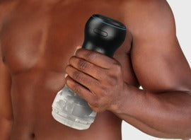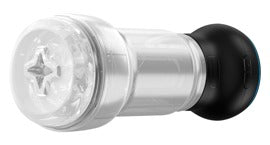 Fully-automated, interactive blowjob pleasure! The Feel Pocket Stroker Crystal masturbator + PowerBlow suction attachment in a combo set from Kiiroo. The dynamic duo for intense blowjob sensations with suction control. Handy, discreet and suitable for every penis. The easy-to-hold masturbator, Feel Pocket Stroker Crystal from Kiiroo, is in a discreet neutral transparent look. With an exciting texture inside for an intense penis massage. The inner sleeve is made out of soft, skin-like Superskin material and can be easily removed from the case for cleaning. 16.4 cm long, outer Ø 5.8–8.4 cm, inner Ø 2 cm–4.5 cm (flexible). ABS, TPE. The PowerBlow from Kiiroo fits perfectly on the Feel Pocket Stroker Crystal to upgrade the handy masturbator and turn it into the ultimate blowjob machine. The PowerBlow suction attachment is simply screwed on to the masturbator. It will also fit on every other stroker masturbator from Kiiroo. The various suction modes can be controlled manually at the push of a button directly on the PowerBlow. They can also be controlled via Bluetooth/Wifi/app for fully-automated and interactive pleasure. Individual blowjob patterns, remote play and remote-controlled interactions with a partner are possible via the FeelConnect app. VR videos can be watched via FeelMe AI. Rechargeable - USB charging cable included. 7.2 cm long, Ø 6-7.8 cm. Weight 198 g. ABS, PU, silicone.