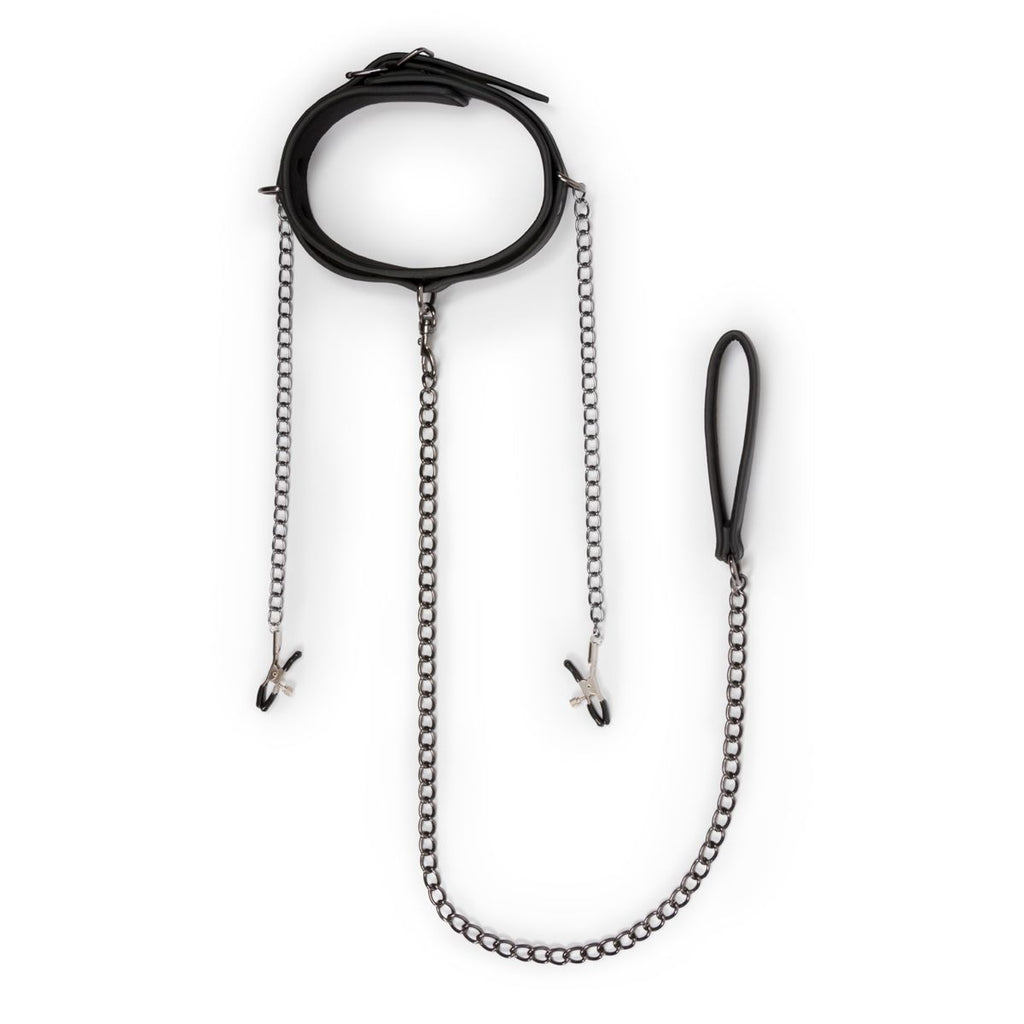 With this collar with nipple clamps you can dominate your partner and enjoy the feeling of control! The collar is made of faux leather, which gives it a luxurious look. It is adjustable, so it will surely fit. The collar and the clamps are connected by metal chains. With this collar you will definitely experience excting and sexy SM play.