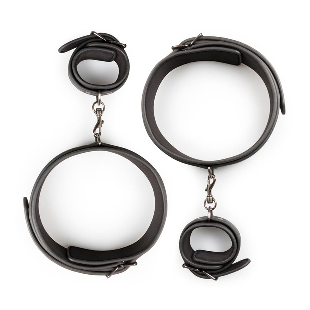 With this special thigh and wrist cuff set, you can tie your sub's hands to his or her thighs. This way you have complete control for an enjoyable BDSM experience. The cuffs are made of strong and durable faux leather and are lined with foam to prevent scratching. The handcuffs are attached to the thigh cuffs with clip fasteners. This means you can also detach the cuffs and use them separately or in combination with other BDSM toys. All four cuffs are easily adjustable for a perfect fit and a comfortable use.