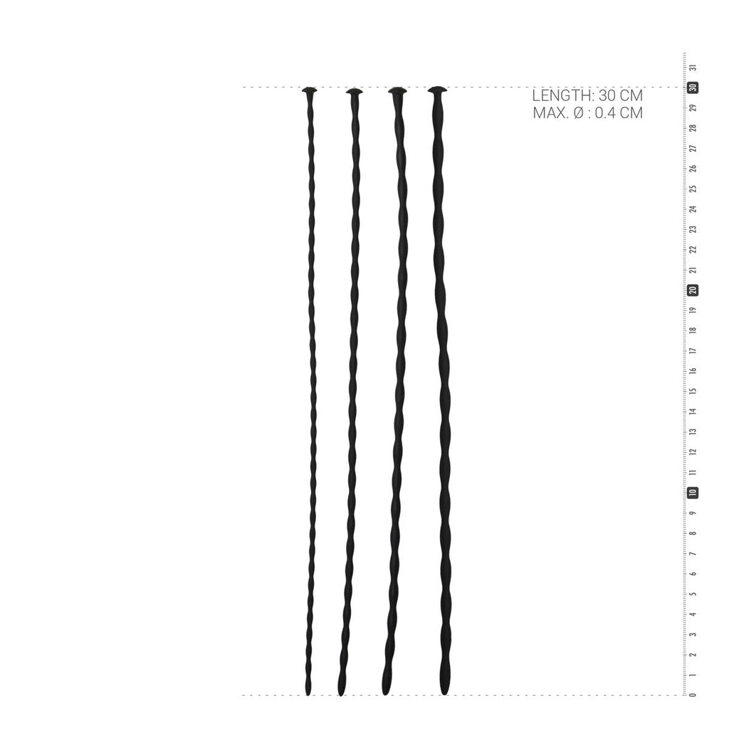 Discover the deepest, most sensitive spots with this silicone dilator set. The complete set is perfect for men who want to push their limits. Start small and gradually work your way up to the largest dilator. The dilators are made entirely of soft, smooth silicone, making them feel pleasant and very flexible. Apply a water-based lubricant and let the dilator slide in. Feel how the toy slides deeper into the penis, providing intense stimulation wave by wave. Dilator Dimensions: total length 30 cm, insertion depth 29.5 cm. The 4 dilators have diameters of 2, 3, 4, and 5 mm, respectively. Warning! This product is not suitable or intended for medical purposes. To prevent injury or aggravation of existing conditions, this product should not be used on bruised, swollen, or inflamed areas. Use the product only as intended/instructed. The use of this product for purposes other than intended or instructed may result in possible injury. No medical claims are guaranteed or implied by the use of this product; its use is at your own risk.