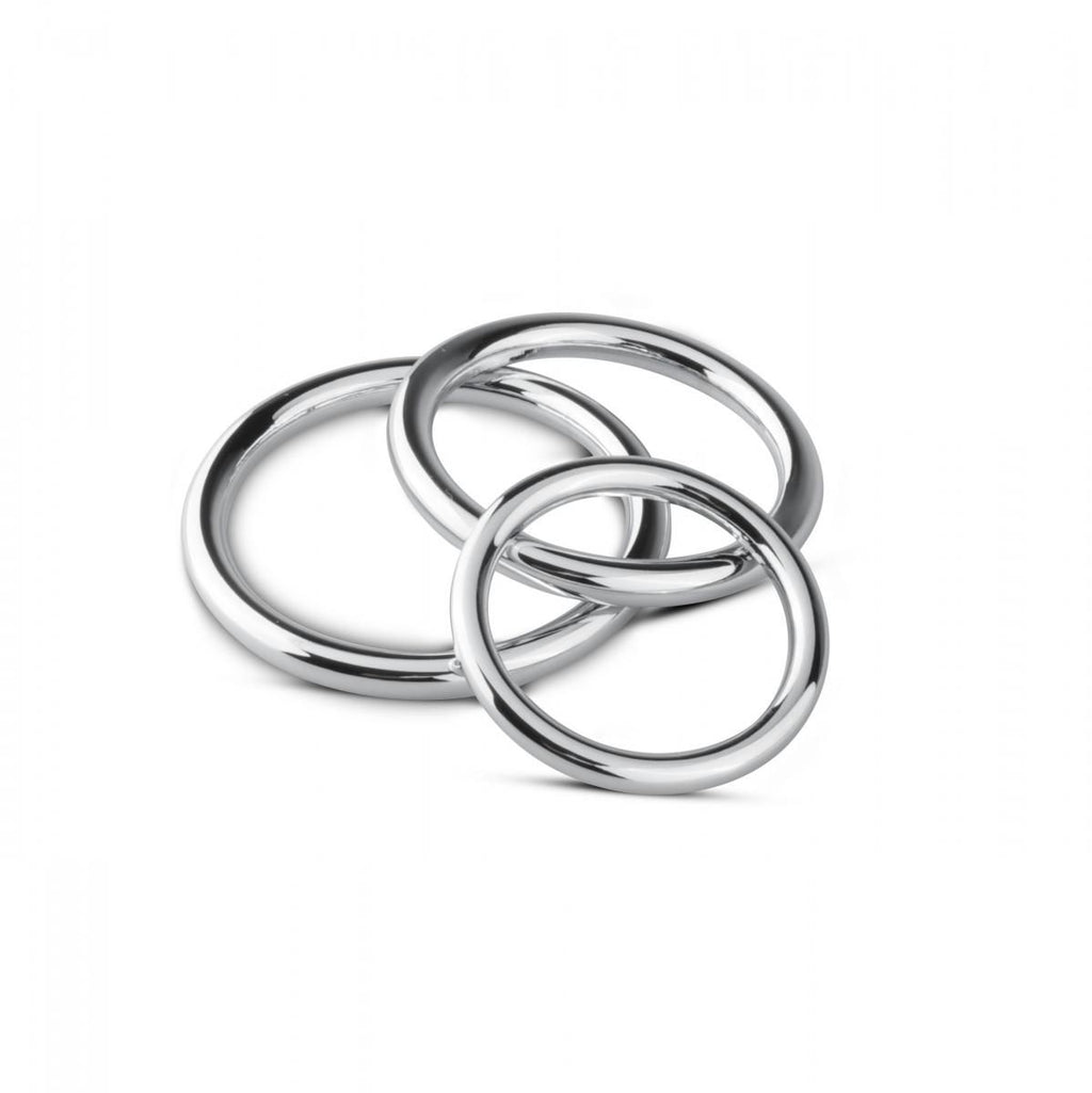 Discover your perfect size with this cock ring set from the Sinner Gear collection. The set consists of 3 metal penis rings that can be worn around the penis, the balls and the glans. The rings are strong and heavier that most cock rings and because they are made of metal, they can be used with any type of lubricant. Dimensions rings: Small: inner diameter 3.5 cm, outer diameter 5 cm; Medium: inner diameter 4 cm, outer diameter 5.5 cm; Large: inner diameter 5 cm, outer diameter 6 cm.