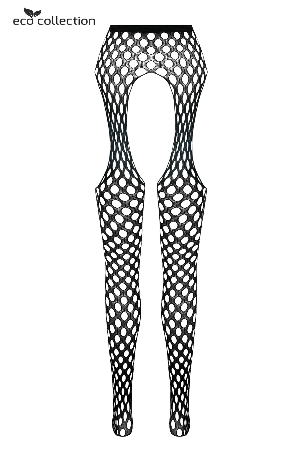 Suspender panty with wide mesh. Made of recycled material, available in one universal size.