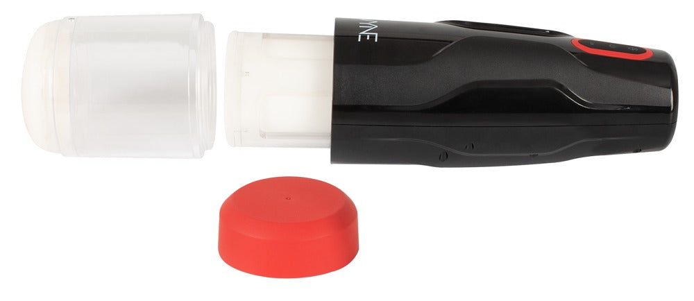For an intense penis massage with sexy moans! Powerful Rotating Masturbator 05 from WYNE with a rotating sleeve (left and right) and a thrust function (10 modes) to guarantee an all-round stimulation of the penis – the functions are easily controlled at the push of a button. Everything can be seen through the transparent cylinder that is lit up by red LED lights – if desired – and this can be extremely arousing. The light and sexy moans (3 sounds) will add the finishing touch to this realistic experience – the included headphones can be used to enjoy the moans in a discreet way. The soft and stretchy inner sleeve with a soft touch texture has numerous soft dots on the inside that massage the penis in an intense way. The sleeve can be removed for cleaning. The easy-to-use masturbator can be stored safely, discreetly and protected from dust thanks to the included lid. Rechargeable – USB cable included. Complete length 28.8 cm, insertion depth 11 cm - 13 cm, inner Ø 2 cm (flexible). Weight 591 g. Silicone, PU, ABS, TPE, PC.