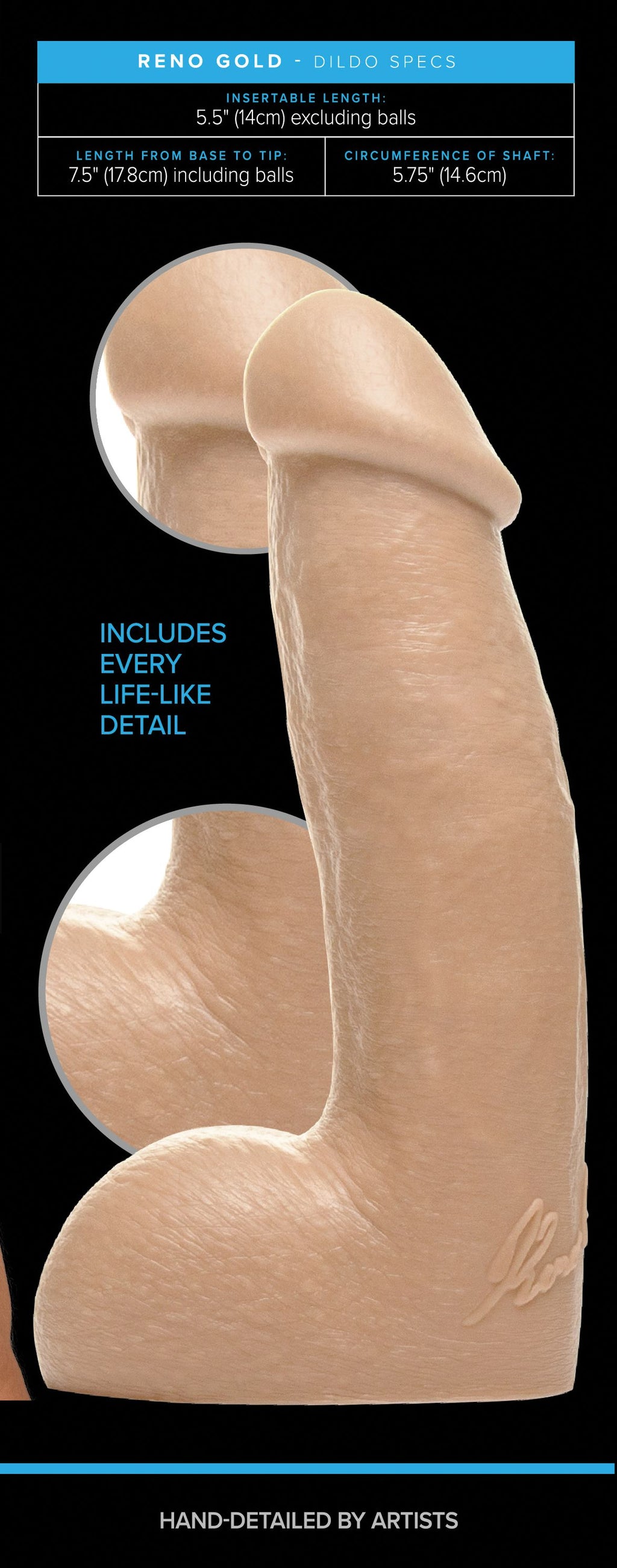 Let yourself be pampered by Reno Gold, a delicious dildo modeled after the famous porn star. The Fleshjack Boys series is known for its realistic design. The removable sleeve is made of SuperSkin, a body-safe silicone that feels tremendously soft and comfortable. This material quickly warms up, which is a major advantage. This dildo has a hard core so it is also well suited for use as a strap-on dildo. Thanks to the realistic glans, veined shaft and scrotum, you can enjoy a lifelike experience. Tips to enjoy your Fleshjack even longer! Clean your toy after use with a toy cleaner or a mild, antibacterial soap and lukewarm water. -Always allow the dildo to dry thoroughly in a dust-free place. -Only use a water-based lubricant. A silicone-based lubricant could damage the material.